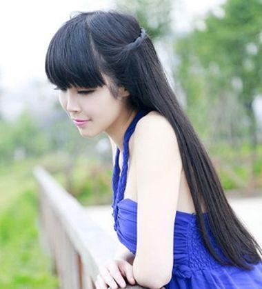 斜刘海学生长直发编公主头发型
