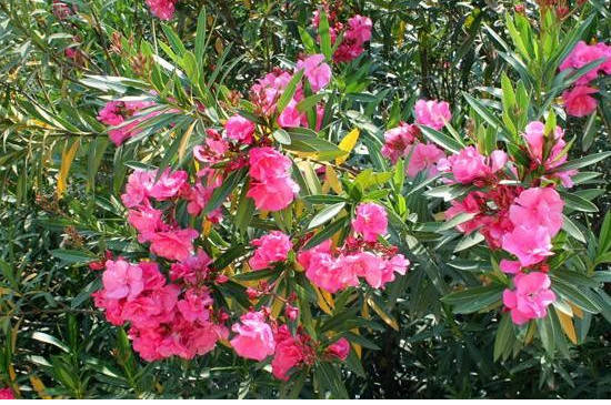 夹竹桃的花很鲜艳,但是夹竹桃的汁液却含有剧毒。夹竹桃的汁液中含有强心甙物质,这种强心甙是自然植物的毒素,对心脏会有毒性影响,单单一片叶子就足以致命。夹竹桃目前在城市用于观赏和净化作用,只要平时注意就可以了。
