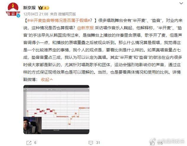 唱作音乐人鞠起:半开麦是否属于假唱需要看比例是什么样的。如果真唱音量占七成,垫音音量占三成,可以认定为真唱。其实“半开麦”和“垫音”的做法在业内很多时候大家都是默认的,尤其针对唱跳歌手和团体,运动会强烈地影响你的声音,通过这样的方式保证现场效果也是可以理解的。当然,也是要看具体情况和使用的比例。(新京报)