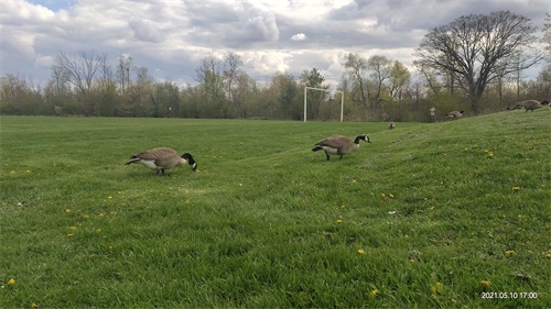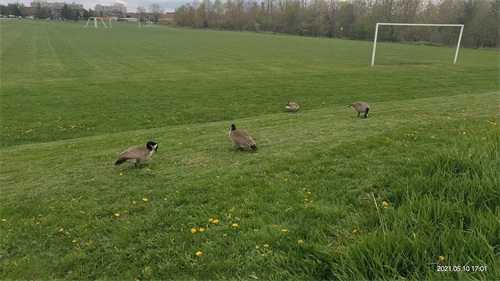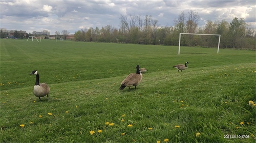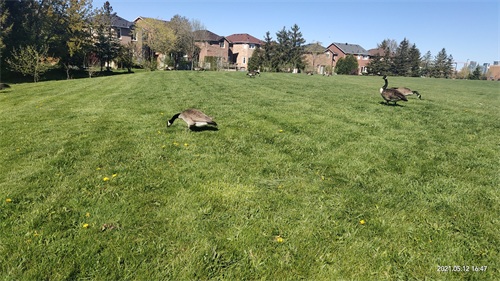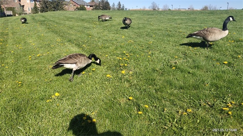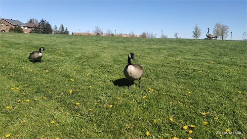 加拿大黑雁(Canada goose),俗称加拿大鹅,时常被时长北留学生和华人尊称为“鹅大爷”“鹅势力”,它们无处不在,无论是在湖边草地还是在居民区,都可以看到它们的身影,甚至在公路上它们也会逍遥自在地游荡。一般情况下人鹅是和平相处的。