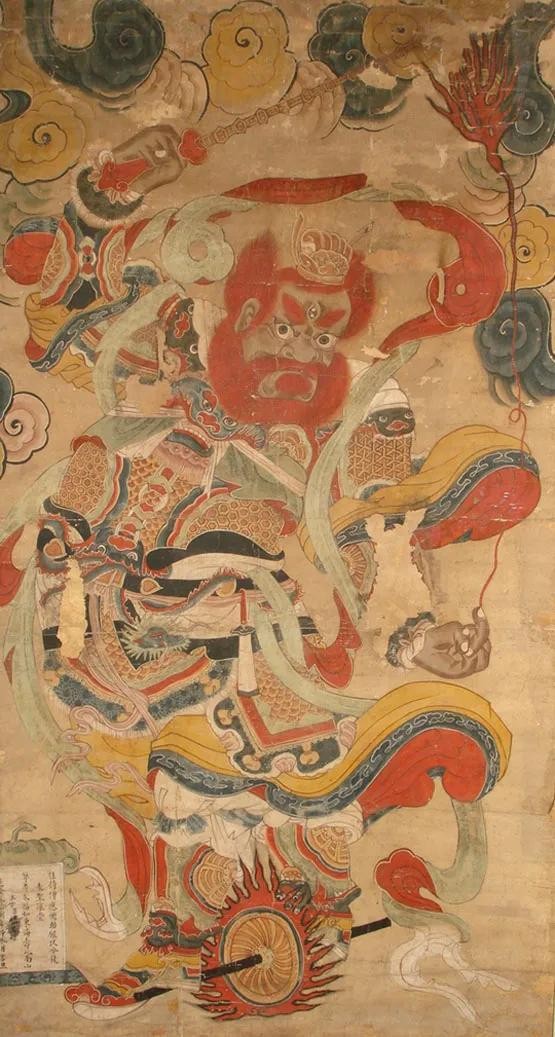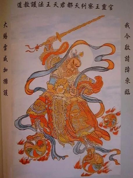 王灵官是,又叫华光元帅,太乙雷神应化天尊,都天纠察大灵官。属道教雷部。也有三只眼,脚踩火轮(单只),司天上、人间纠察之职。