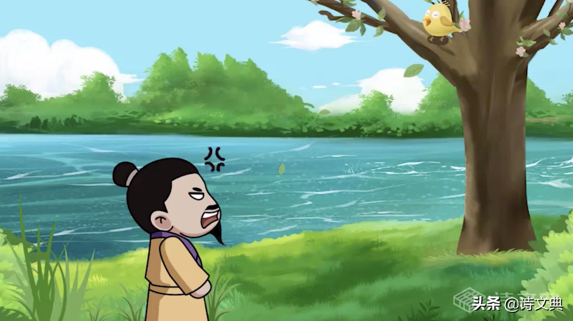 春天天气暖和了,他就在周围散心游玩。这一天,他来到小河边的树荫下,树下刚长出一片绿草,非常鲜嫩。树枝深处还传来了黄鹂的鸣叫。“独怜幽草涧边生,上有黄鹂深树鸣”,黄鹂的叫声虽然好听,韦应物却不感兴趣,他更喜欢那些充满生命力的小草。