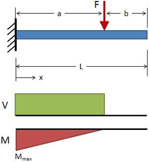 杆件载荷P且受力位置在距离固定点a处, 杆件长度L, 杆件弹性模量E, 杆件截面惯性矩I,最大挠度变形量fmax