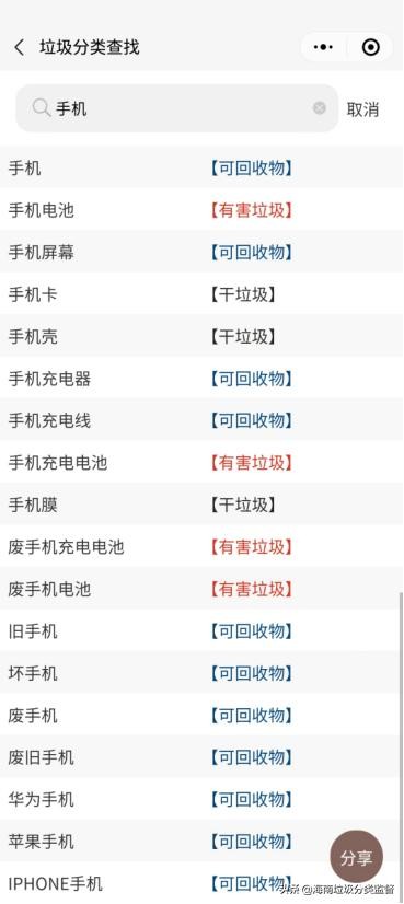 很多人以为手机肯定是属于有害垃圾,毕竟电池啊电子产品啊大多都是有害垃圾嘛,但要这么想可就大错特错了,来直接上个表格感受一下手机的垃圾分类可以有多少种。