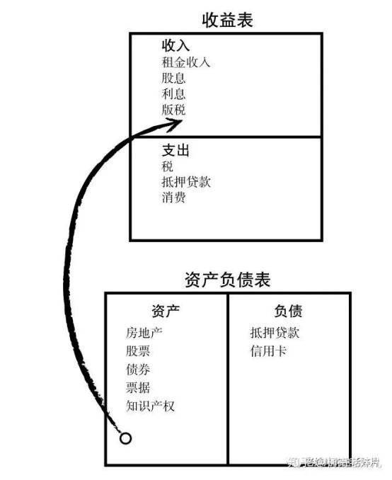 极少数人的现金流是从房地产、存款、基金、股权、等资产中取得收入再用于购买资产重复取得收入。