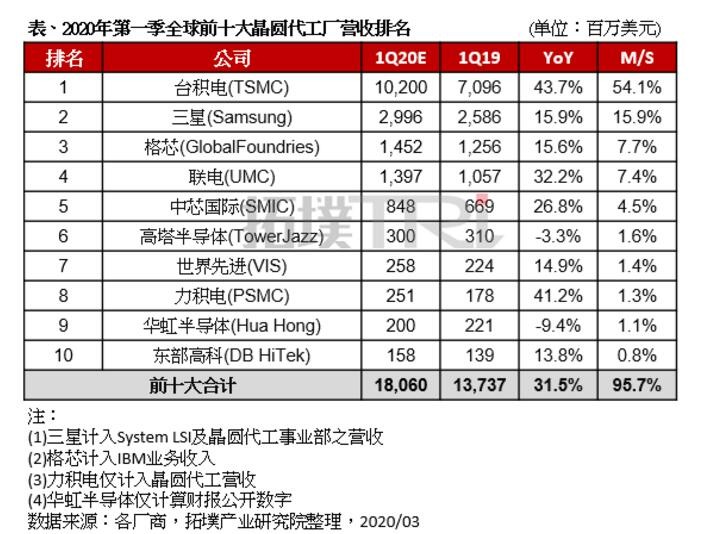 目前,我国半导体芯片产业对金钱、人才、技术都有巨大的缺口,同时这也说明成长空间还非常大。同时,我们看到华为海思,中芯国际,华虹半导体等公司也取得了巨大的进步。集邦咨询旗下拓墣产业研究院公布的2020年第一季度全球十大晶圆代工厂营收排名中,中芯国际排名第5,华虹半导体排名第9。