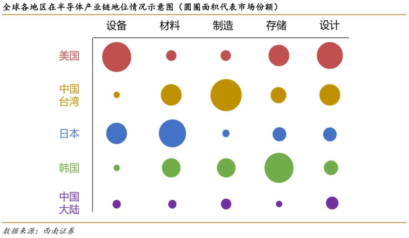 目前大家一般说到的半导体产业,其实就是包括了材料,元件,成品所有相关的产业。半导体产业最初起源于二战之后的美国,但历史上已经发生过两次产业转移。第一次转移是从20世纪 70 年代开始,由美国本土向日本转移,成就了东芝、松下、日立等知名品牌;第二次转移是在 20 世纪 90 年代末期到 21 世纪初,由美国、日本向韩国以及中国台湾转移,造就了三星、海力士、台积电、日月光等大型厂商。目前,半导体产业正在经历着第三次产业转移,目的地就是中国。中国在过去二十多年,通过长期引进技术、培养人才、承接低端组装和制造业务,已经基本完成了半导体产业的原始积累,在高端的设计、制造、封测领域,也慢慢的成长起来。