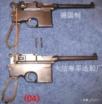 其中所谓自来得步枪,就是后来被称为大沽产马匣子的毛瑟卡宾型。而大沽厂毕竟是造船所,它仿制的自来得手枪,原型就是取自毛瑟海军型手枪,即所谓的大镜面匣子。