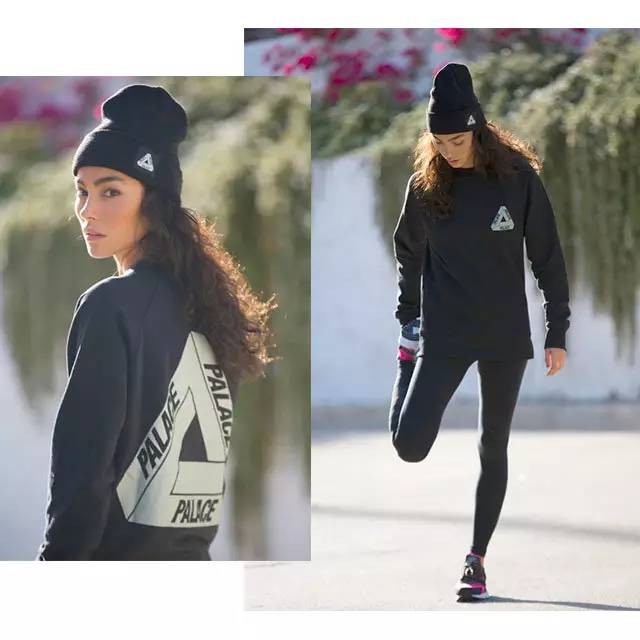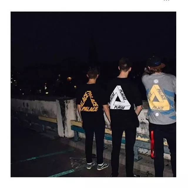 LOGO看似像内外两个三角紧扣在一起,PALACE字母分别出现在三条边上。很多时候的联名款和特殊款,也都是以这个三角LOGO为基准进行演绎的。