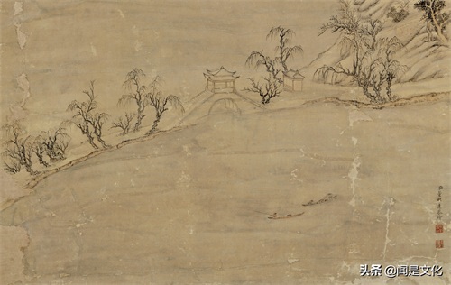 《断桥残雪图》画的是杭州西湖十景之一“断桥残雪”景。白堤第一桥曰断桥,界于前后两湖之间。春雪未消,悉琼林瑶树,晶莹朗澈。