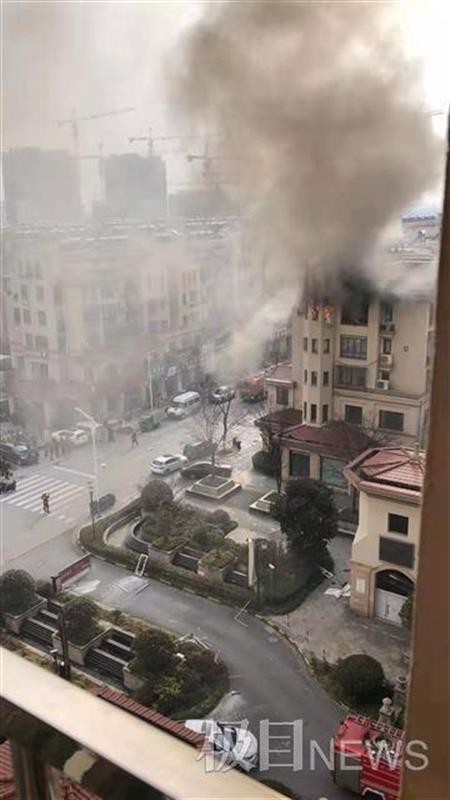 网络视频显示,一栋居民楼上黑烟滚滚,可看见明火,周边群众称楼上发生了爆炸。