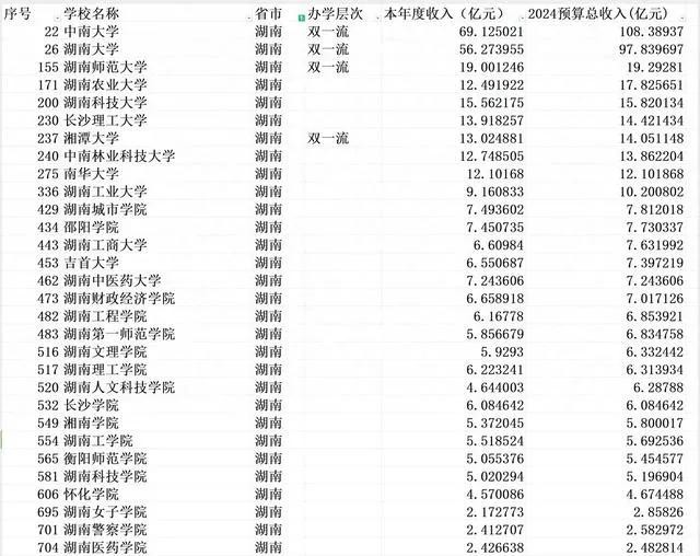 在最近公布的“2024年湖南高校年度收入榜单”上南华大学也表现平平,落后同挡次湖南科技大学,长沙理工大学。按常理南华大学这么多医院,年度收入不会差,但目前这地位不尽人意。希望南华大学来年大发。