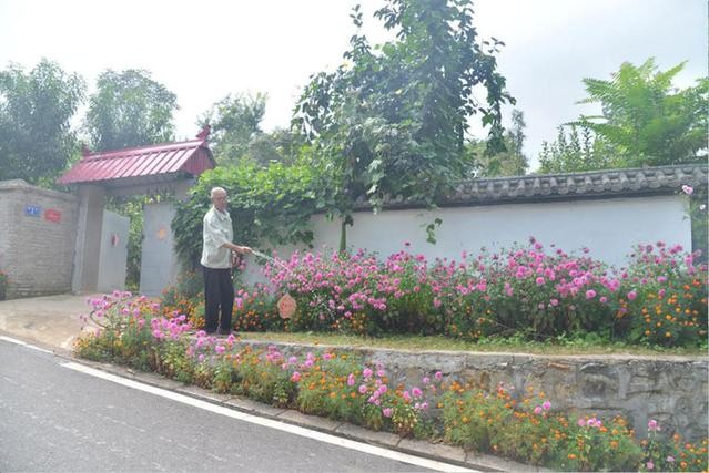 9月13日,西胜沟村的一户脱贫村民在打理自家门口的花卉。新华网邢玉伟摄