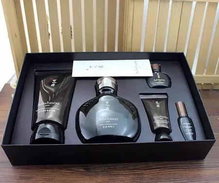 这款是保湿控油套盒,具有抗初老的作用,含有丰富的发酵成分,可使男性肌肤健康光泽,发酵成分可快速渗透到肌肤内层并持续不断的为肌肤提供水分,使肌肤的锁水能力提高。水乳面霜洁面,都有,特别全面。