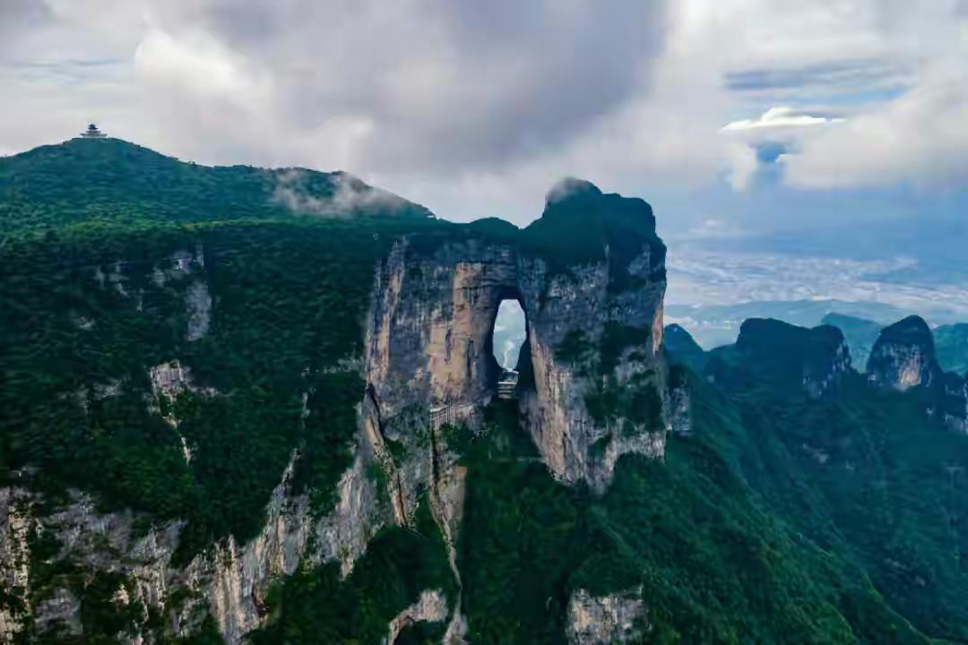 2、天门洞,亿万年形成天门,大自然鬼斧声工,让人惊叹、因此有电影阿凡达来取景,1999年世界飞行大师翼装飞行挑战天门洞,2006年俄罗斯空军飞行表演队驾驶5架苏27战斗机穿越天门洞,表演技术轰动全球。