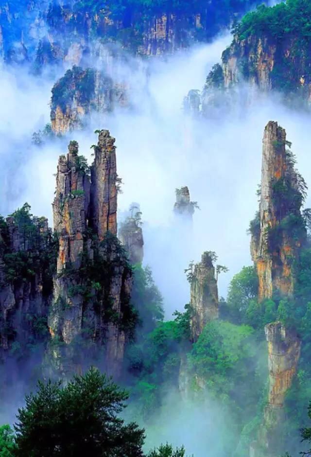 在全国50多个世界遗产文化名录景区中,要以个人观点评价,张家界景区美景独占鳌头,当你登上观景台、或坐上索道、一眼望去,苍松翠柏、奇峰怪石、层峦叠嶂、满目青秀,万儿八千座奇异的山峰耸立,又好似雨后春笋,云雾缭绕的胜景、如同置身于仙境一般,正应了那句张家界“奇峰三千,八百里秀水”,此身不来一趟张家界、是人生无法弥补的遗憾。