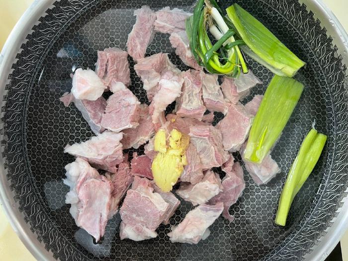 首先,准备新鲜的牛腩,将其切成块状。为了去除血水,将牛腩浸泡在水中片刻。随后,将牛腩放入冷水中,加入一些葱姜和料酒,通过焯水的方式让牛腩更加鲜嫩。