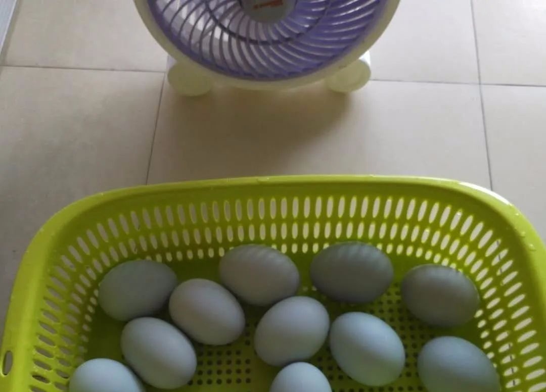 3、接下来的步骤,就是保持鸭蛋干燥,可以放在通风处,也可以用风扇辅助,晾晒一个小时左右。