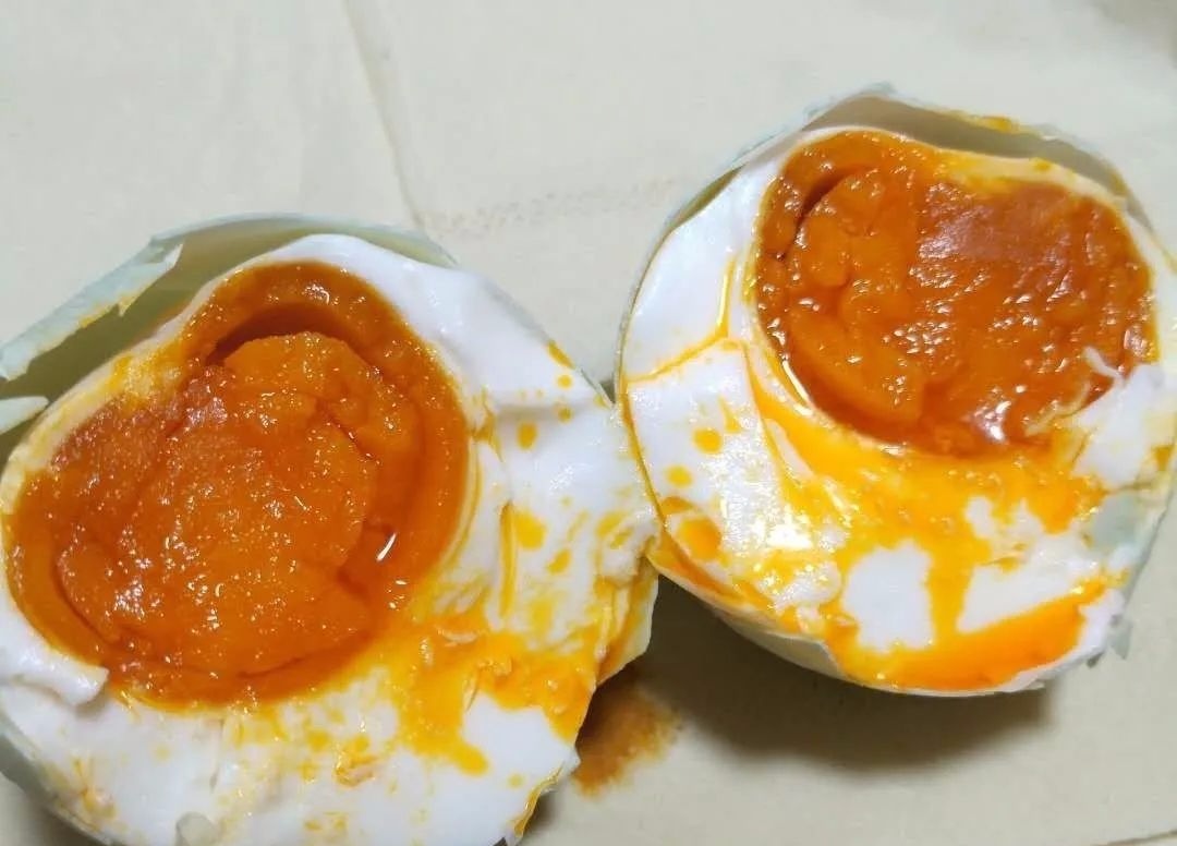腌制的咸鸭蛋,个个蛋黄流油起沙,很多人都非常喜欢吃,吃米饭的时候拌一点咸鸭蛋的蛋黄,感觉比蟹黄还要美味,咸香可口,口感细腻爽滑,吃着还比较绵软。