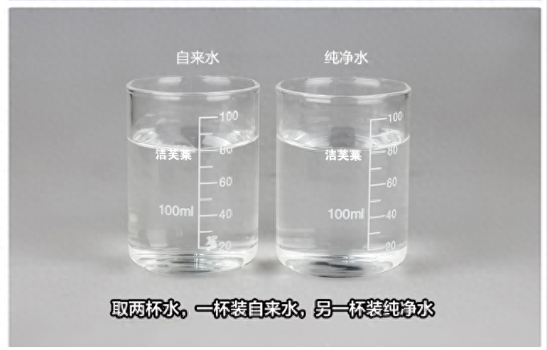 1、准备检验水--取一只容量为1000~1500毫升的透明玻璃杯,一杯盛普通的水(牛奶或自来水),另一杯盛矿泉水或经过深度净化的水(例如纯净水或蒸馏水),并排放在桌子上。