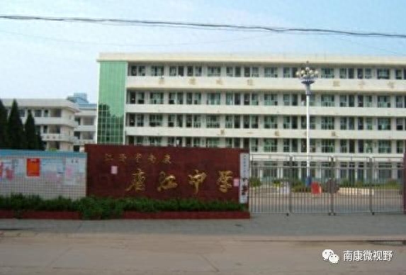 唐江中学:在唐江镇东卢屋村高土里。占地61亩。建有教学楼5栋,教学仪器室2间和礼堂、办公室大楼各1栋。设高中11班,初中15班,在校学生2053人,教职工93人,为5年制。解放前为私立岭北中学。解放后与光华中学合并为南康初级中学,1953年改名唐江初中,1958年设高中部名唐江中学。