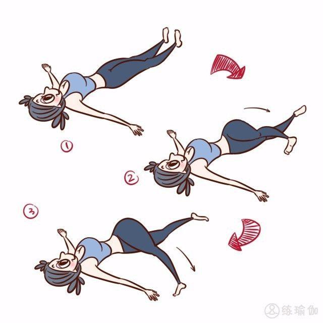 1、仰卧侧抬腿(拉伸髋外旋肌)