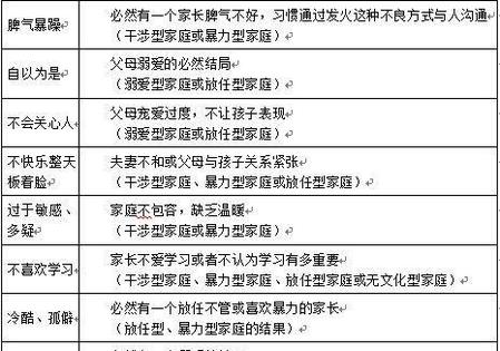 我整理了一张表,描述父母的行为对孩子可能造成的影响: