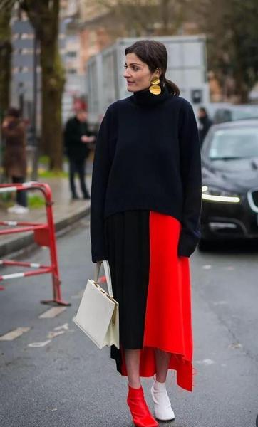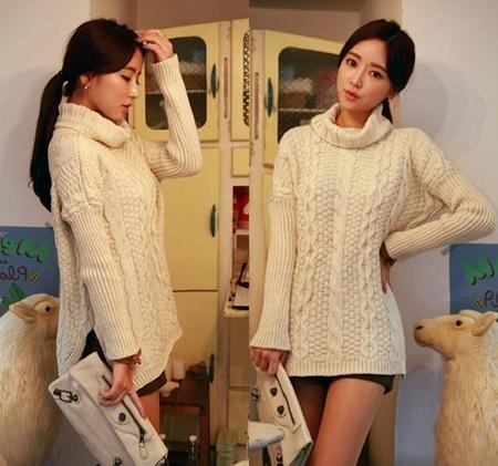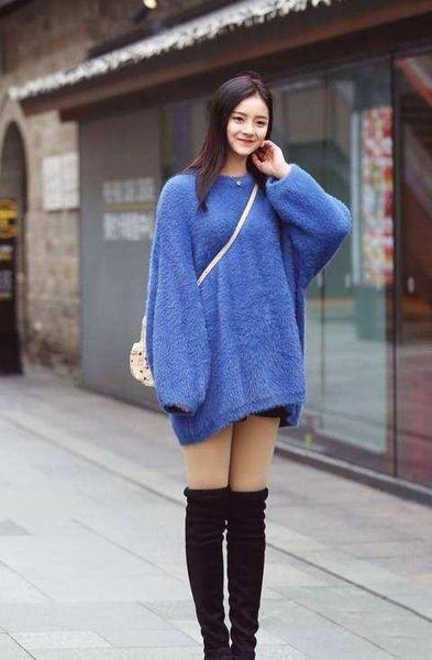 小个子穿长款毛衣为了显高,一般是建议搭配过膝长筒靴,露出点大腿的皮肤。