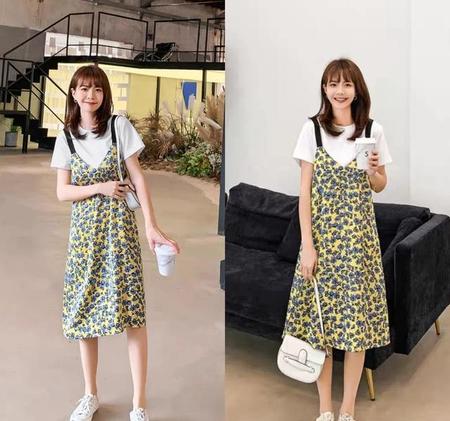 碎花吊带裙很适合春夏季节去选择。很喜欢小姐姐这样穿搭,选择一件长款的碎花吊带裙内搭一件简单的白色T恤,清纯又甜美。