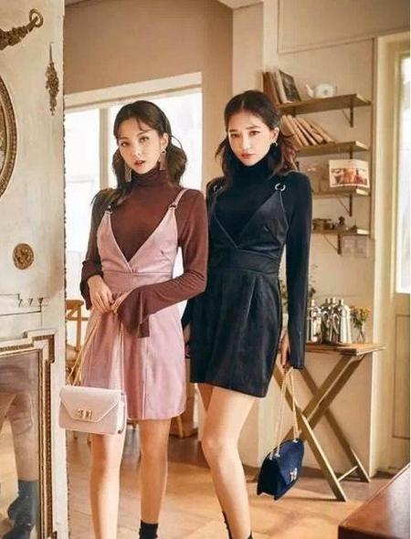 吊带连衣裙内搭针织衫,优雅舒适不止一点点哦。同色系的搭配还能打造巧妙的层次感,还不get起来?