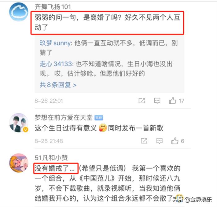 但事实却并非如此,有知情人就表示称,玖月奇迹的王小海和王小玮夫妻并没有离婚,现在两人不在一起演出,只是因为男方的主业不在娱乐圈了而已