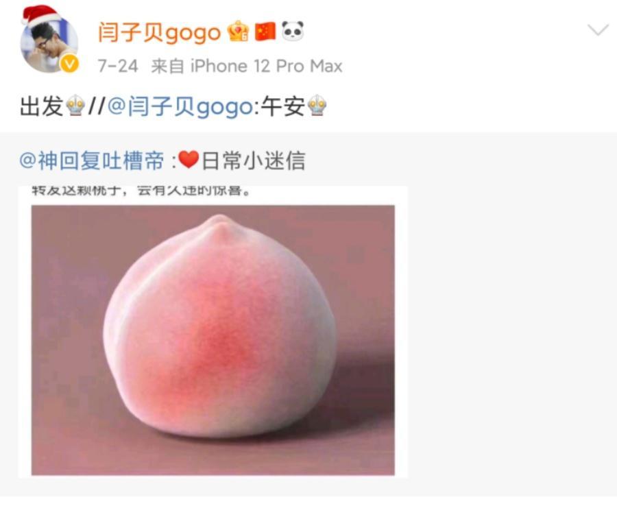 每次在闫子贝的社交媒体上看到一个大大的仙桃。