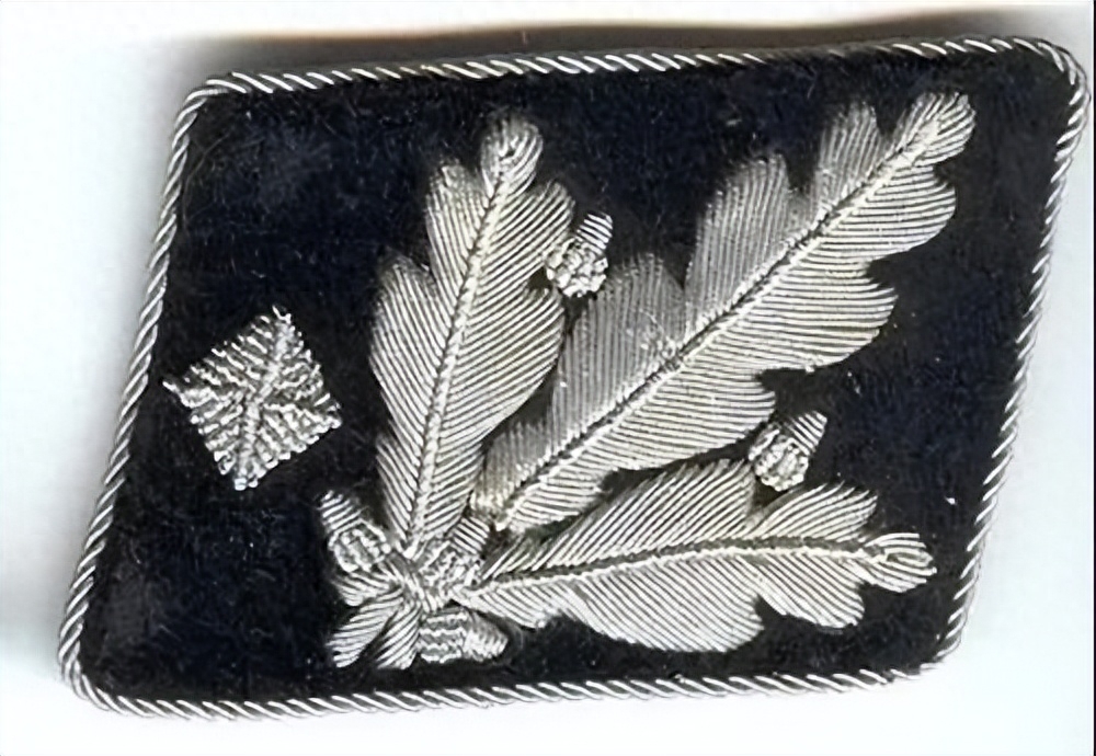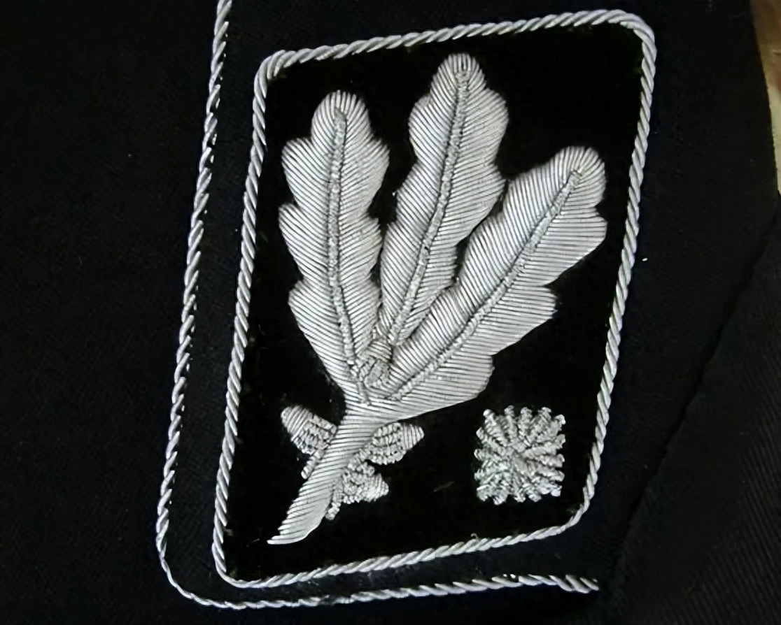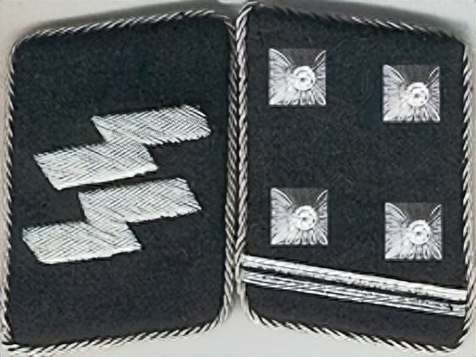 党卫军将军的肩章与国防军一样,但领章不同,领章由三片橡树叶图案加四角星组成,四角星的数量区分级别。肩章是金线编织的麻花加四角星。