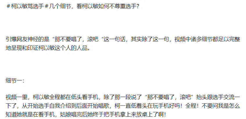 这句话瞬间点燃了观众心中的怒火,但柯以敏似乎对网友们的态度不屑一顾,还在微博上指责大家多管闲事。