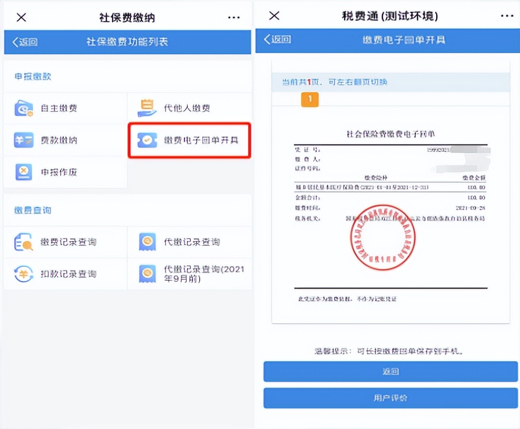 缴费成功后,缴费人可以在缴费电子回单模块打印缴费电子回单作为缴费依据(不能作为记账凭证)。