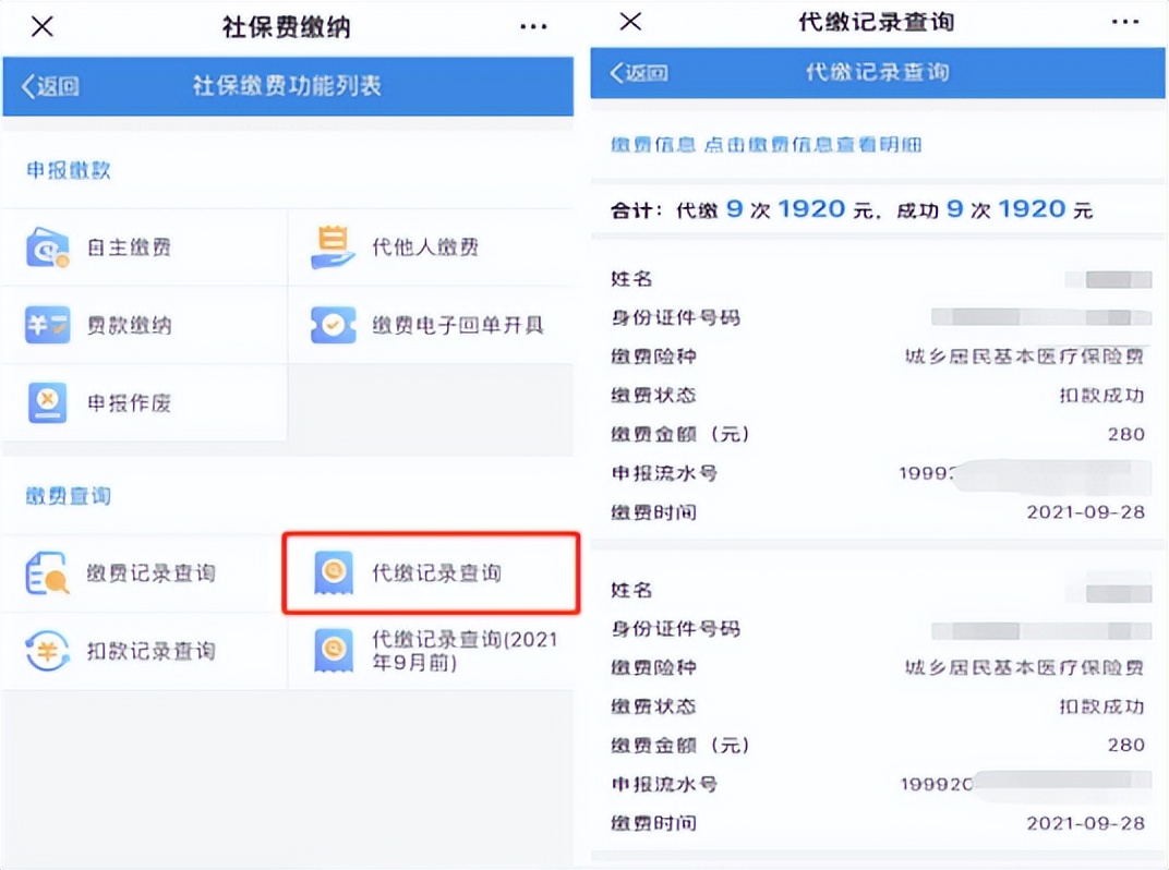 代他人缴费可以通过代缴记录查询模块查询代他人缴费信息。