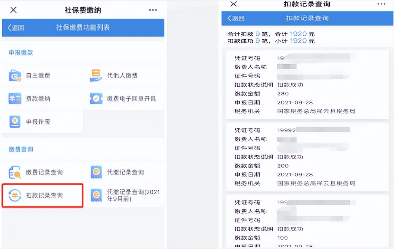 (2)缴纳记录查询