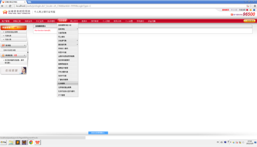 缴费人持本人身份证和云南农信储蓄卡到云南农信网点办理个人网银证书版,领取一个网银U盾。在连接互联网的电脑插上网银U盾,自动连接www.ynrcc.com云南省农村信用社主页。