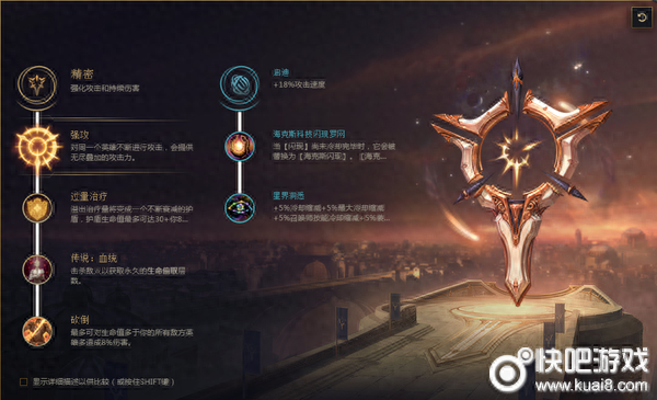 小编为大家推荐的是这套精密系的符文推荐,这个符文的第一个就是强攻,这是一个加强版的热诚,配合上寒冰的Q技能可以打出非常好的效果,而过量治疗这个符文技能提供的护盾可以为寒冰提供一些生存能力,传统血统这就是一个成长性的吸血能力了,最后的看到是为了破甲而来,副天赋方面由于寒冰没有位移技能,小编点了一个海克斯的科技闪现,多多少少可以帮助到寒冰一点,还有一个减CD的符文技能,用起来非常好。