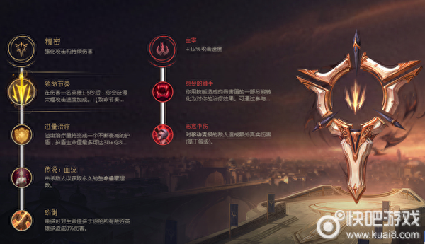 小编为大家带来的韦鲁斯的符文推荐是精密系列的韦鲁斯,经过最近几个版本的更迭,现如今韦鲁斯非常依赖平A了,在W的被动加持下配合强攻的属性带来的收益非常可观,而过量治疗为韦鲁斯提供的盾可以保证韦鲁斯的生存能力,传说血统为韦鲁斯提供不错的吸血回复能力,最后的砍倒就是为了更好的破甲,副天赋方面小编推荐大家点一个减CD以及海克斯的闪现,因为没有位移技能,多一个总比没有强。