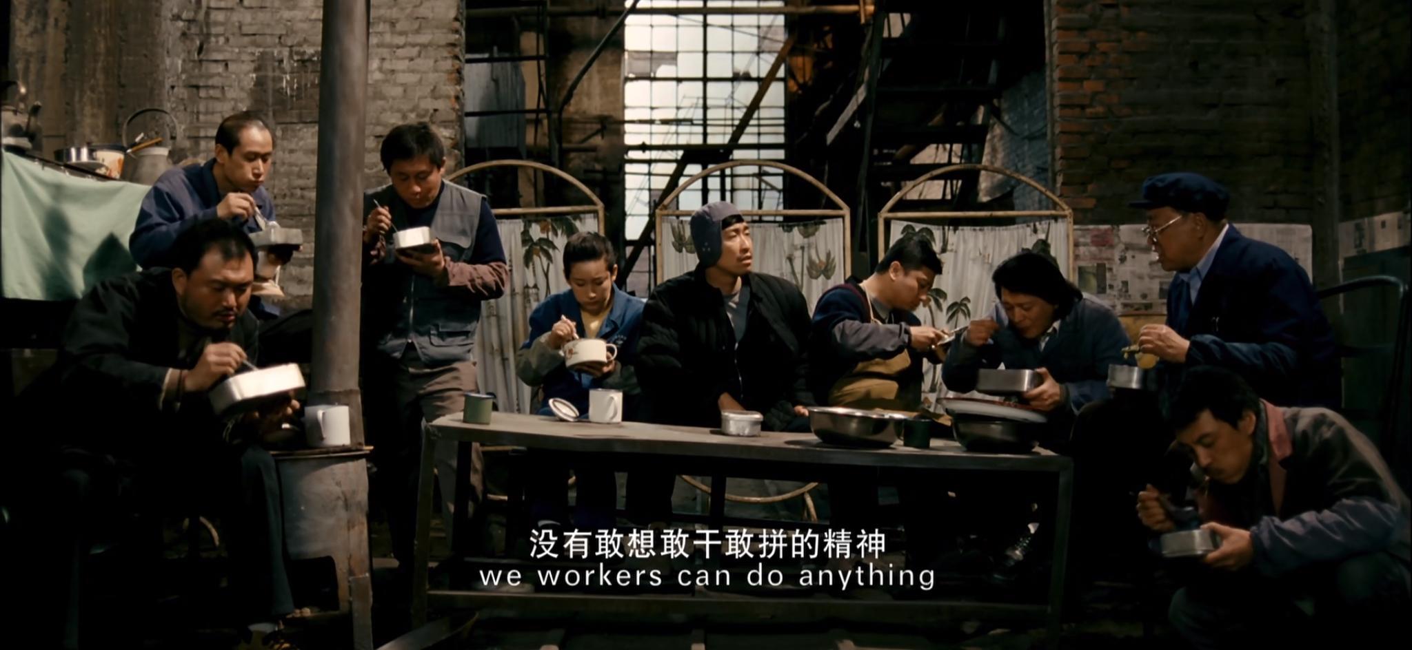 可惜像陈桂林这样正直守信的下岗工人们在社会转型之中找不到自身价值。大量的工人蒙着眼过河,在一片喧嚣中听声音辨别方向,他们迷茫且恐惧,但从未停止过步伐。因此,当陈桂林倡议建造钢琴时候,他们仿佛找回了自身的价值,他们不仅怀念在工厂时大家一起干活的感觉,还怀念他们身为工人的尊严与价值。几个人抛下手头的工作,斗志昂扬地干起了几乎不可能的事。