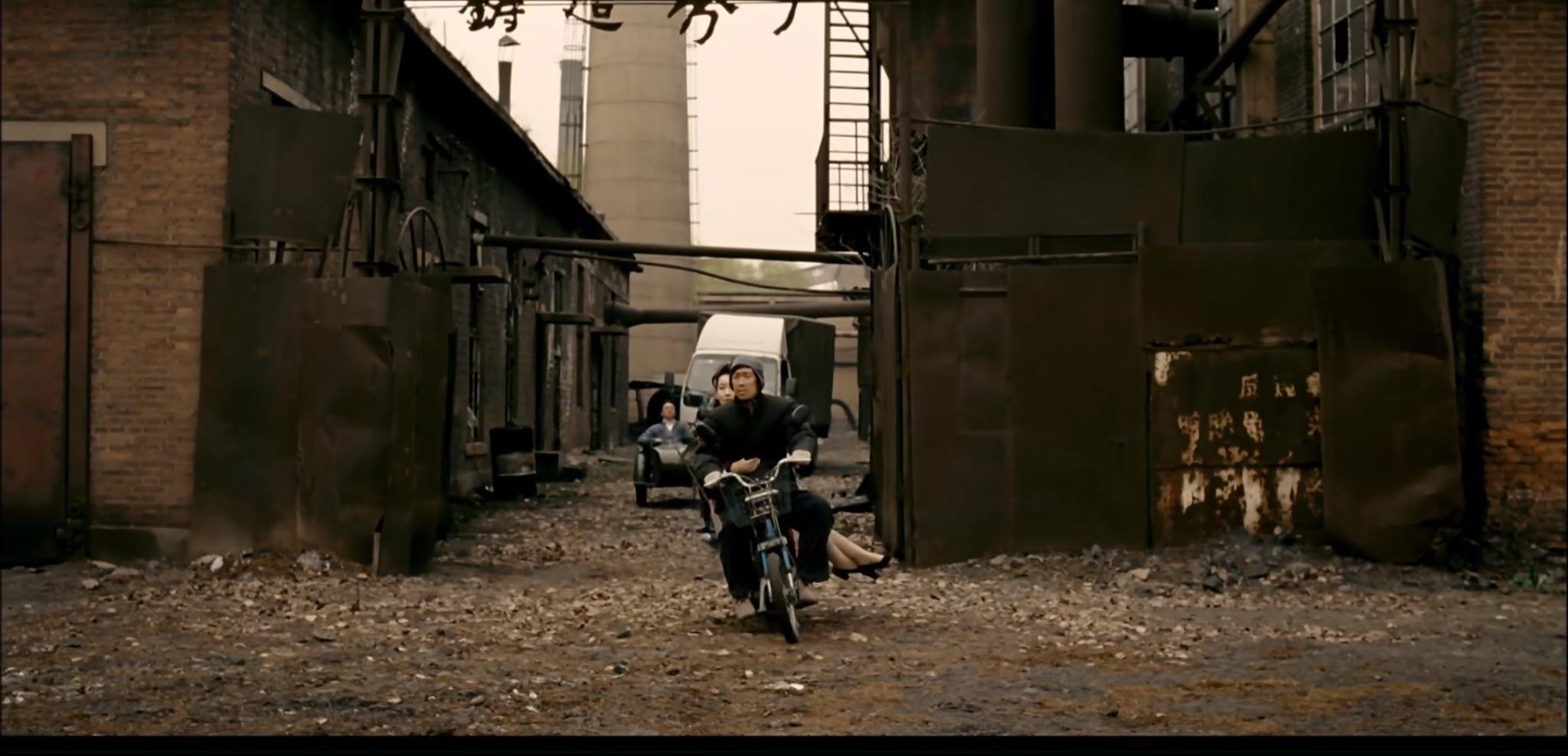 摄影机随着画面水平移动,客观地交代影片故事发生的背景,更凸显影片的真实性。如陈桂林骑着电动车载着老父亲坐,破败的东北老工业的景象缓缓地随着电动车移动,陈桂林在风中大声地告诉父亲自己和妻子离婚的情况。这个画面表达了一种心酸,陈桂林和离婚事件,下岗工人和衰败的工厂遥相呼应。生存艰辛的陈桂林还必须照顾老人,茫茫前路,何去何从?