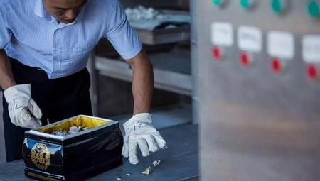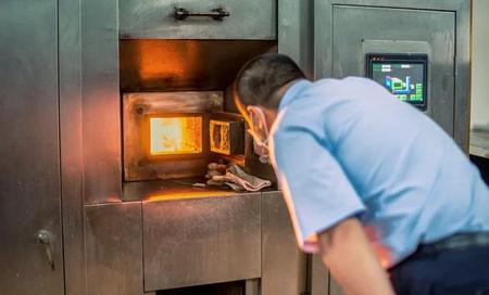 整个焚烧过程大概在45分钟至2小时不等,依据重量和火化炉的档次区分,焚烧完成之后,骨灰会被送到冷却台,使用抽风机进行降温,避免拣骨灰时被烫到!