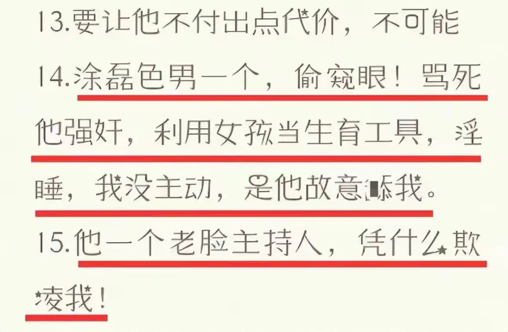 按照这个女子公布的信息显示,在其十九岁的时候,涂磊就对其实行过性侵,此外,涂磊还曾经不停的跟踪且骚扰这位女子。导致其生活非常混乱,因此这才想要通过举报的方式要让涂磊身败名裂。