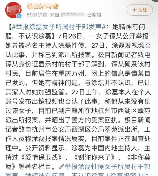 官方通报!该女子患有精神疾病,涂磊无辜且势必要追查幕后真凶