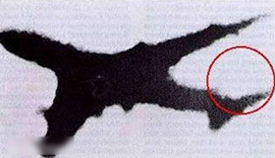 地面拍摄到的日航123航班最后遗影(红圈内是已经破损丢失的垂直尾翼)