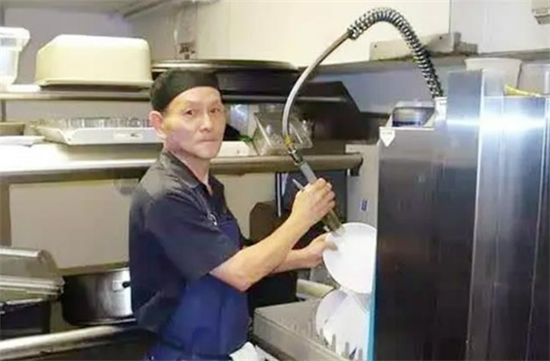 在纽约曼哈顿的五星宾馆中,有一位年近花甲的老人,精神矍铄地在后厨清洗着各类餐具。