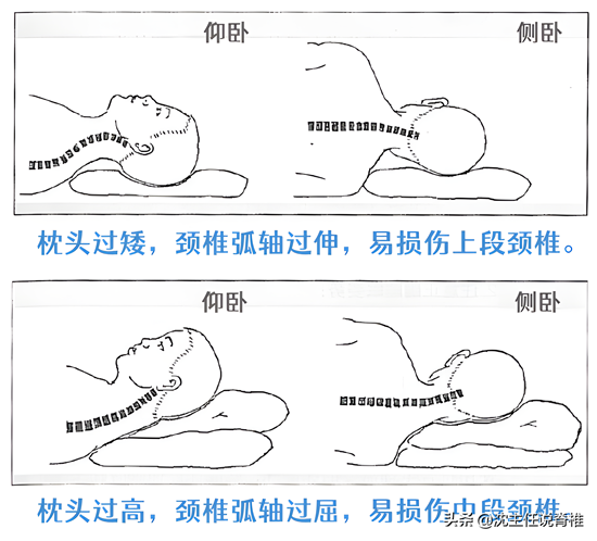 状态,如果长期使用高度不合适的枕头,会使颈椎某处屈曲过度。不良的睡眠体位,则必然造成椎旁肌肉、韧带及关节的平衡失调,造成