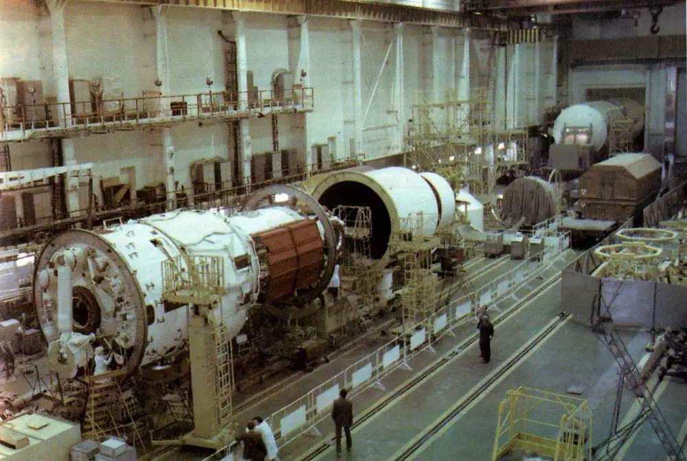 在拜科努尔254场区总装测试的DOS-7和平号空间站核心舱,如今“科学号”实验舱与所有的联盟、进步飞船都集中于这个厂房内总装测试