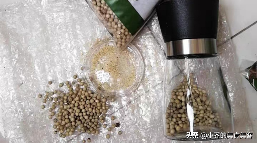 很多人认为胡椒粉是去腥的,错,胡椒粉的作用是增鲜,煎炒烹炸中都能用到它。关于胡椒粉的相关知识,以及买什么样的又便宜又实惠,我以前专门介绍过,我建议大家去翻看一下。